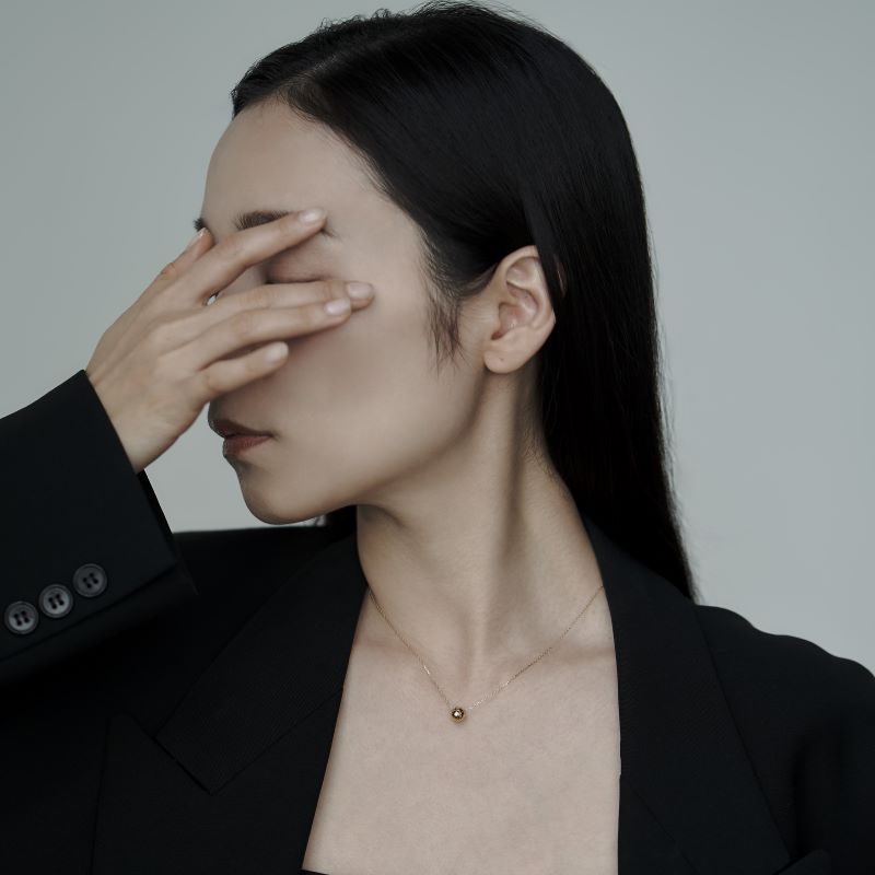 ボール状のパンチング部分にはダイアモンド(0.014ct/約1.5mm)をセッティングし、細めのチェーンとの組み合わせでシンプルながらも上質な印象を持ち合わせます。